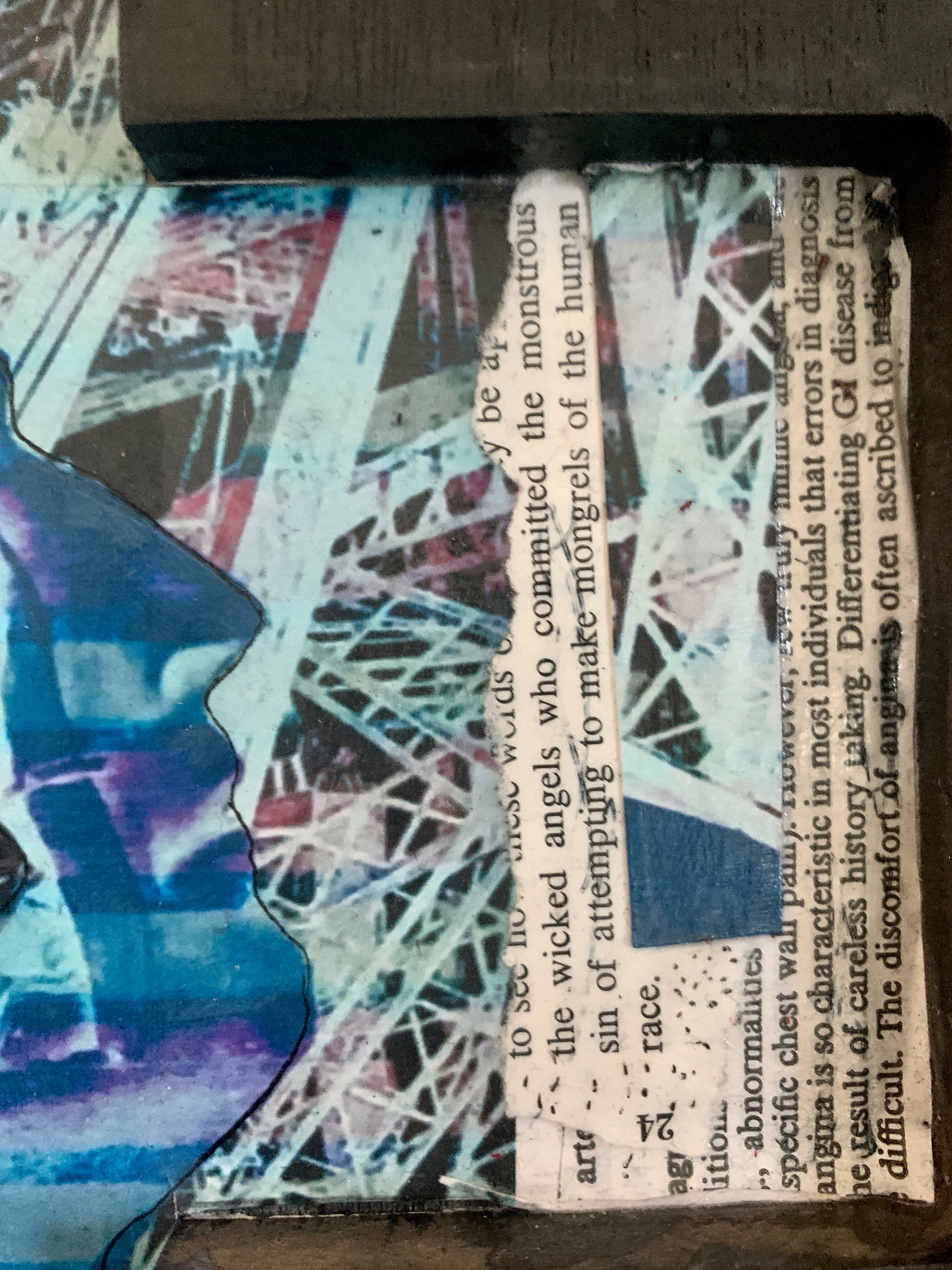 using a juxtaposing mix of collage, paint and drawing these crosses look awesome on the wall.