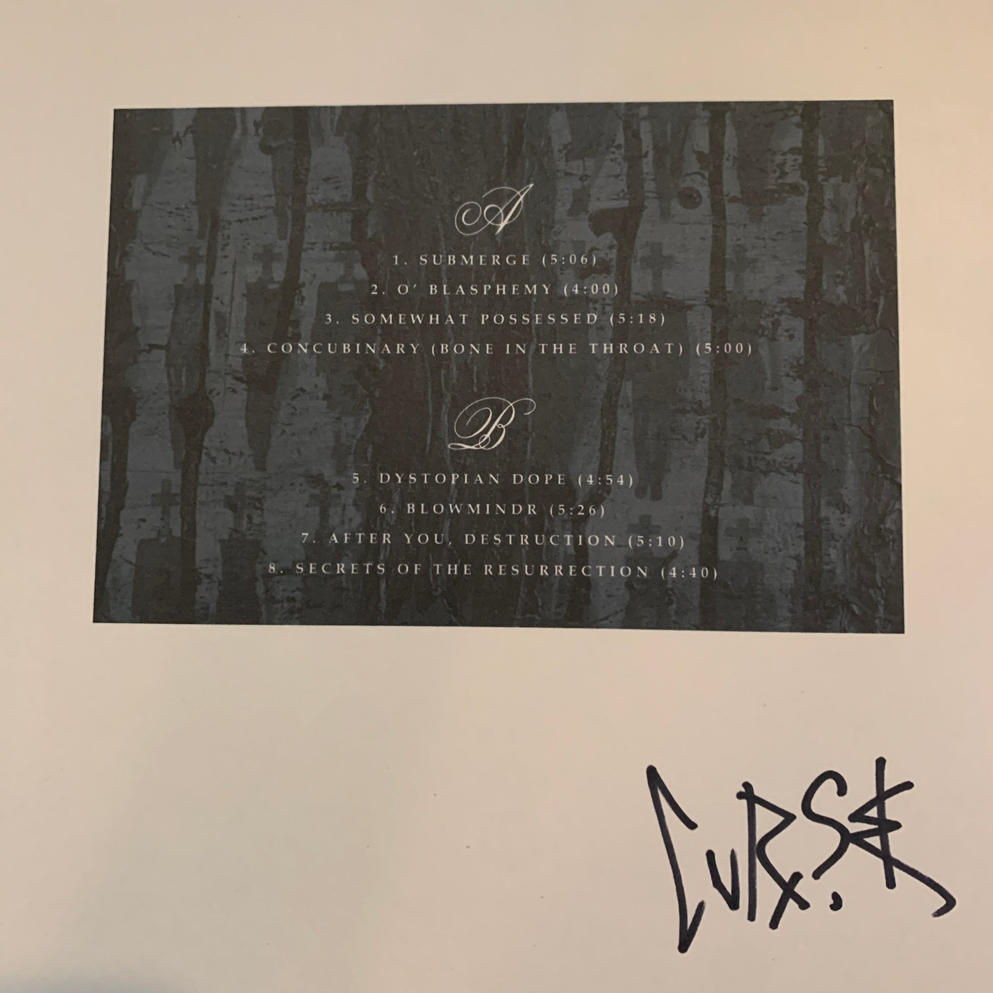 This test pressing is rather unique. it comes in a custom 12" album sleeve that is decorated, collaged, signed and hand-assembled by Curse.